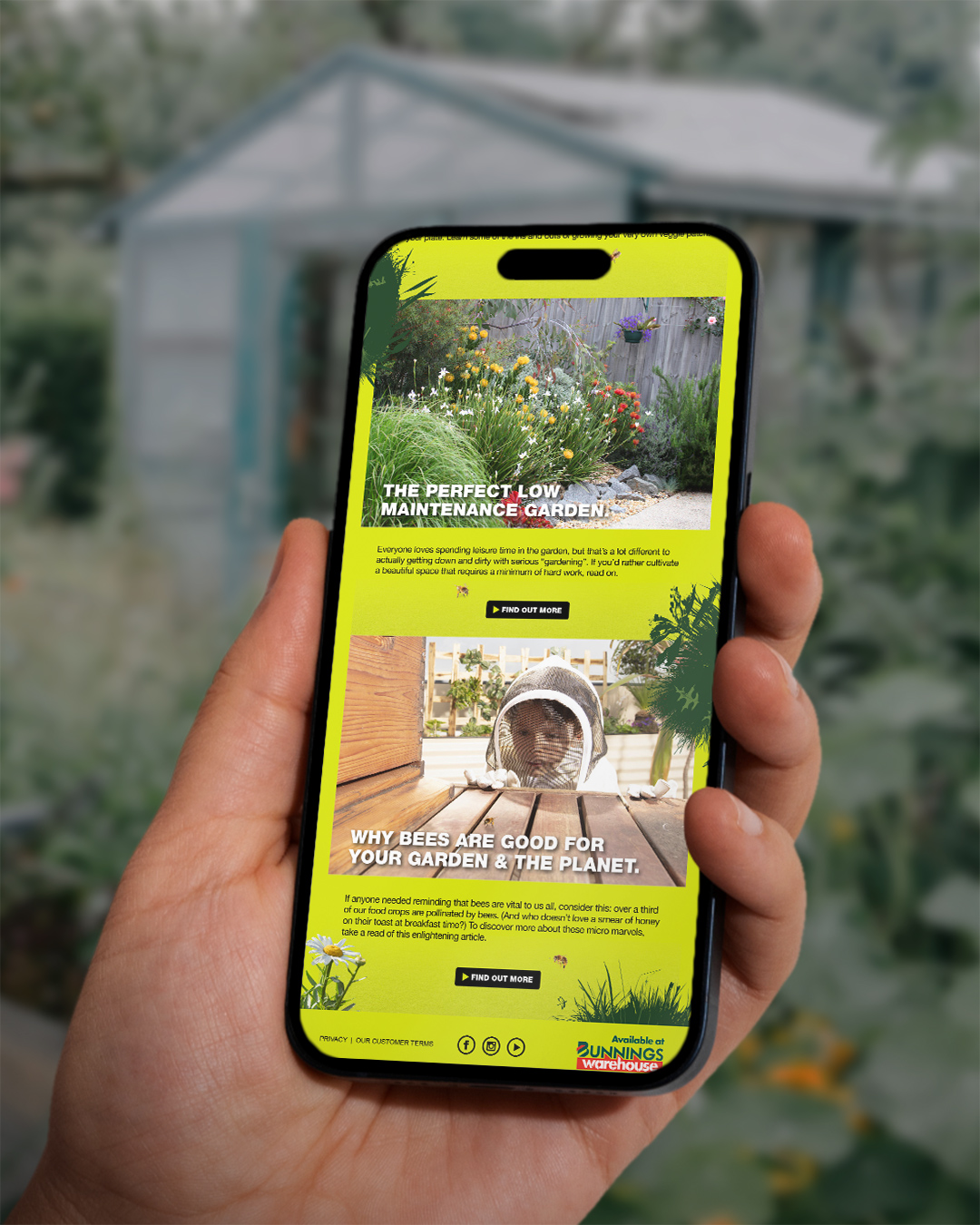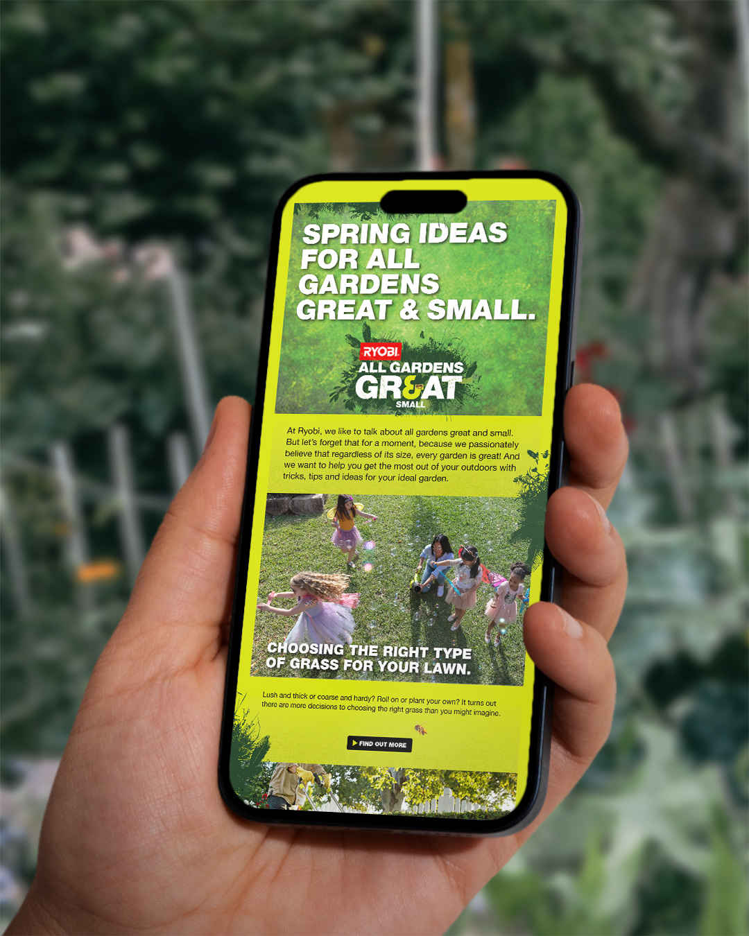 This ad follows the flight of a honeybee through a range of gardens: from sprawling backyards with lawns and flowerbeds to rooftop terraces with herb gardens (and a beehive). Gardens, we observe, come in all shapes and sizes. What unites them is the special place they occupy in our hearts and minds. They offer a refuge, an escape to be among nature and enjoy the fresh air. And to tend your special space, Ryobi has a comprehensive range of battery-powered garden tools.