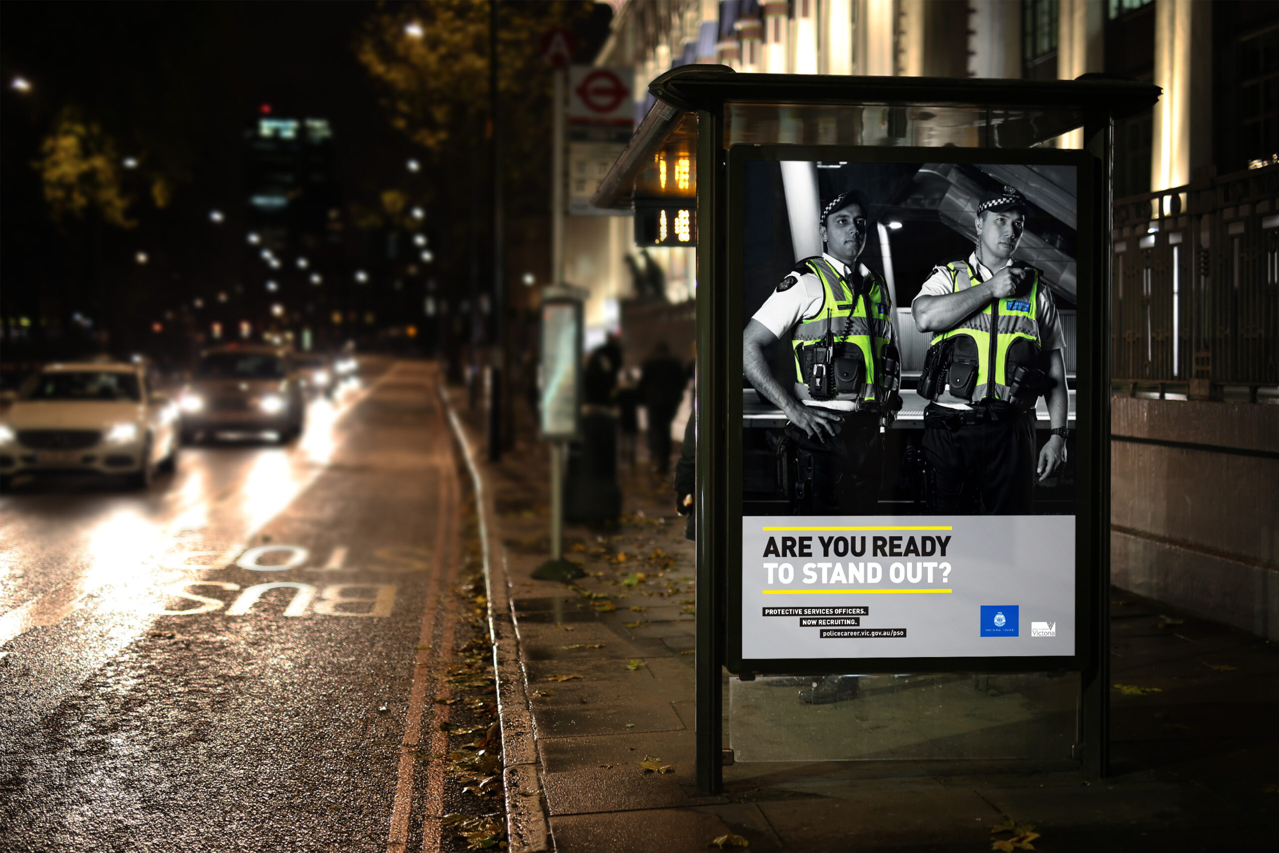 Victoria Police had a challenge: they needed to recruit Protective Services Officers and also convince the public of PSO’s value. The role was far from ordinary – from assisting the elderly to arresting the drunk and intoxicated. Their high visibility vests made the PSOs stand out as a symbol of safety. This insight led to our campaign line: Are you ready to stand out?